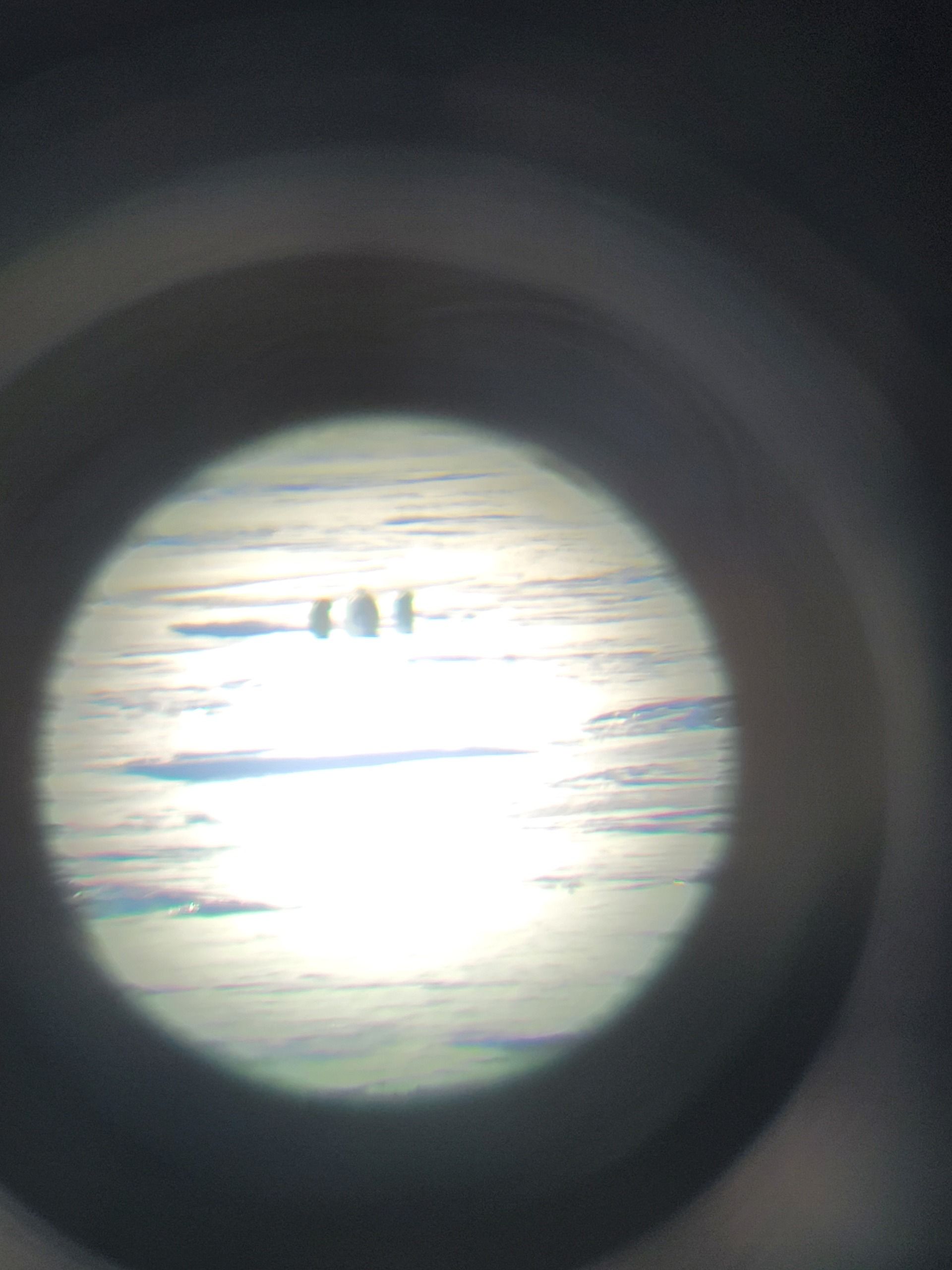 As soon as we got back within range of our dorm’s wifi, my phone exploded with Whatsapp messages from our field team group text. In addition to logistical deatils about another outing that evening, there was the news that Emperor penguins had been sighted out on the sea ice, and you could see them through the spotting scope at the Crary Library. I hustled over there (bringing my key card - the Crary Lab is closed by that time) and sure enough, there was a little huddle of huge penguins, about five of them, pretty far out. I managed to take a terrible blurry photo of them with my cell phone through the lens of the spotting scope.