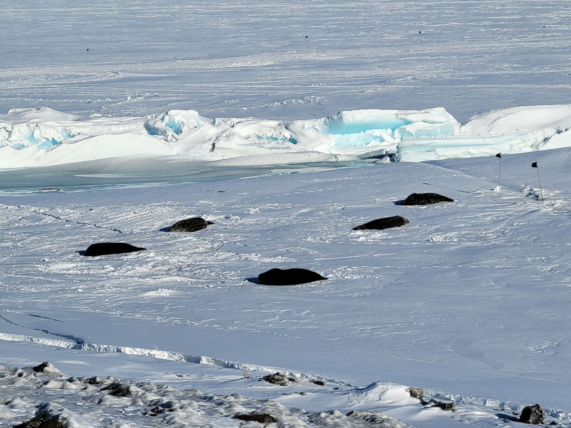 Weddell seals on the sea ice just outside the entrance to Scott Base