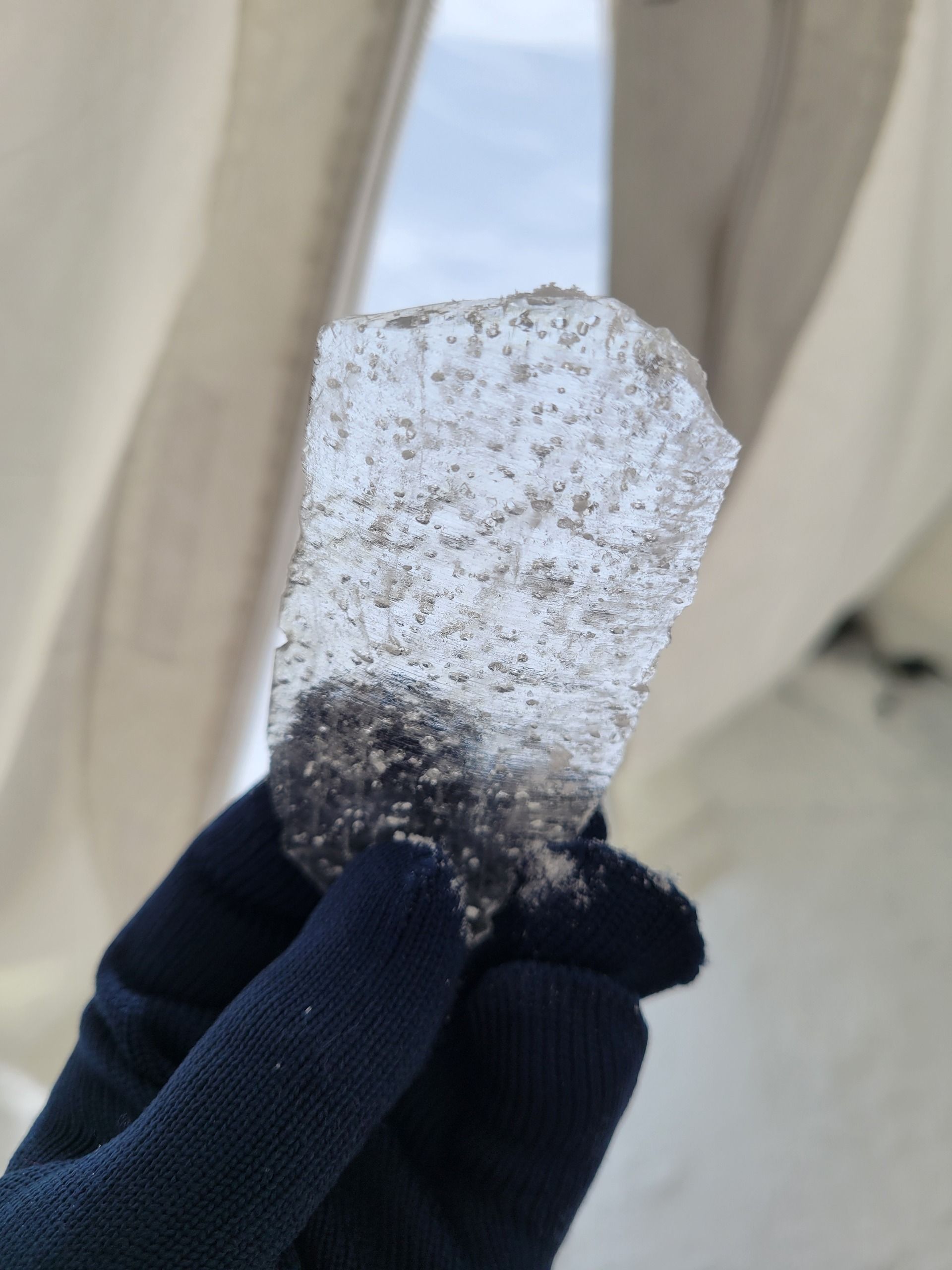 Air bubbles in a piece of ice core we drilled earlier this week. The air trapped in these bubbles is probably at least 200,000 years old.